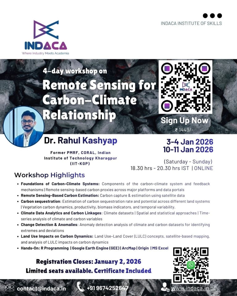 Secure your spot now to gain practical expertise in analyzing carbon-climate interactions using cutting-edge geospatial technologies. Limited seats available for an immersive learning experience!